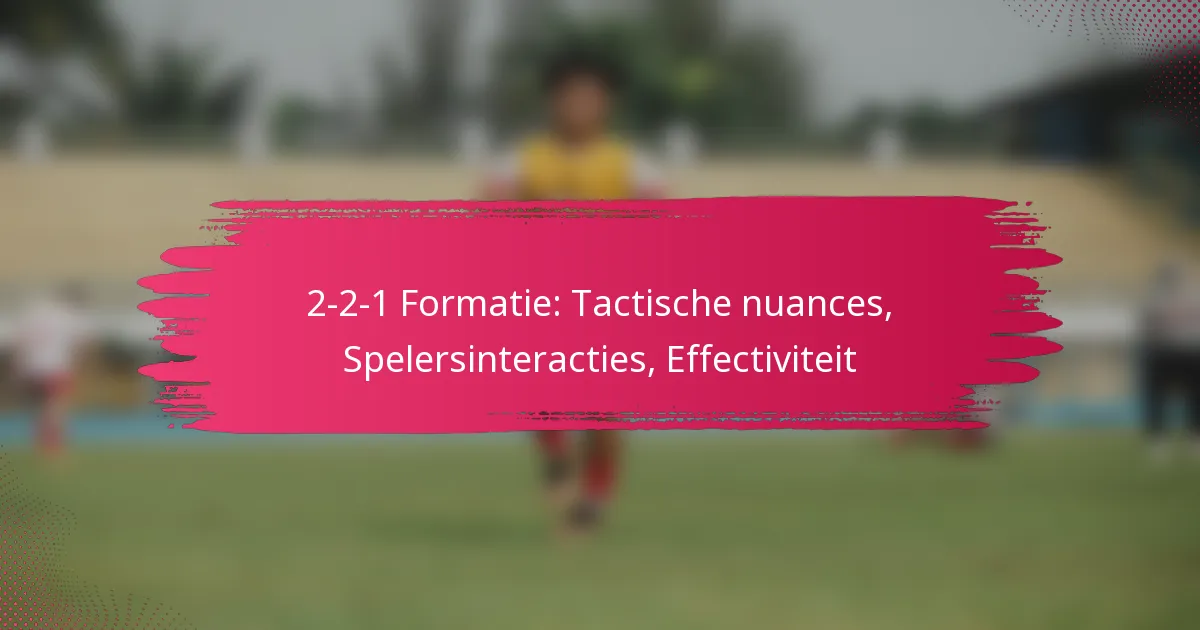 De 2-2-1 formatie is een tactische opstelling die bestaat uit twee verdedigers, twee middenvelders en één aanvaller, ontworpen om een balans te creëren tussen verdediging en aanval. Deze structuur vergemakkelijkt niet alleen effectieve balcontrole en overgangsspel, maar verbetert ook het ruimtebeheer, waardoor teams hun strategieën kunnen aanpassen aan verschillende tegenstanders. Het begrijpen van de verschillende rollen en interacties van spelers binnen deze formatie is essentieel voor het optimaliseren van de effectiviteit in verschillende spelscenario’s.